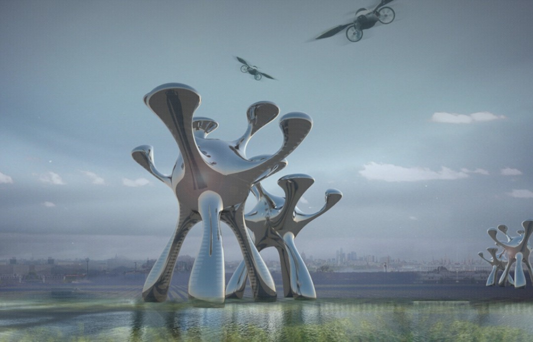 ASTEROIDEA - Yüzen Şehirler, Hermann Kamte & Associates: Bu fütüristik şehir iklim değişikliğinin harap ettiği bir dünya vizyonudur. Hermann Kamte & Associates yükselen deniz seviyeleri ve sert iklim koşulları nedeniyle yerinden edilmiş insanlar için amfibi şehirleri tasavvur ediyor. Bu modüler yüzen şehir yaklaşık 50.000 kişiyi ağırlayabilir. Sürdürülebilirlik göz önünde bulundurularak, denizyıldızından ilham alan blok yenilenebilir enerji kaynaklarını ve verimli geri dönüşüm ve atık yönetim sistemlerini de entegre ediyor. Adadaki çeşitli binaların idari, kültürel, araştırma, spor, eğitim ve eğlence işlevleri vardır.