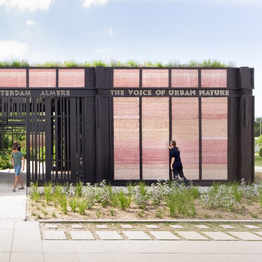 Hollandalı stüdyo Overtreders W'nin ilk iddiası, Almere'deki bu bahçe pavyonunu yaratmak için sökülebilir ahşap modüller içinde pembe boyalı hempcrete kullandı. Stüdyo projenin yeniden kullanılabilir yapılar kurmayı kolaylaştıracak bir yapı sistemi için prototip olmasını amaçladı.