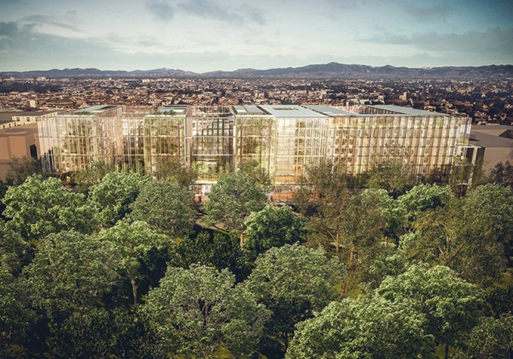 Dominique Perrault Mimarlık tarafından tasarlanan tiyatro, özellikle cephesiyle sürdürülebilir bir yaklaşım sergiliyor.