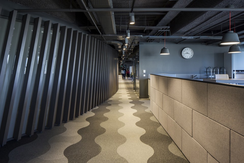 İç kısımdaki, yaya trafiğinin yoğun olduğu koridorlar ve sosyal alanlardaysa, aynı ürün ailesinden, 12W gücünde ankastre ve spot ürünlerden yararlanılarak, mekanın mimarisine uygun ve ihtiyaç duyulan ışık seviyesini karşılayan bir aydınlatma seviyesi yakalandı. Spot ürünler, DALI Dim özellikli elektroraylarla birlikte kullanılarak aydınlatma otomasyonuna uygun bir altyapı hazırlandı.