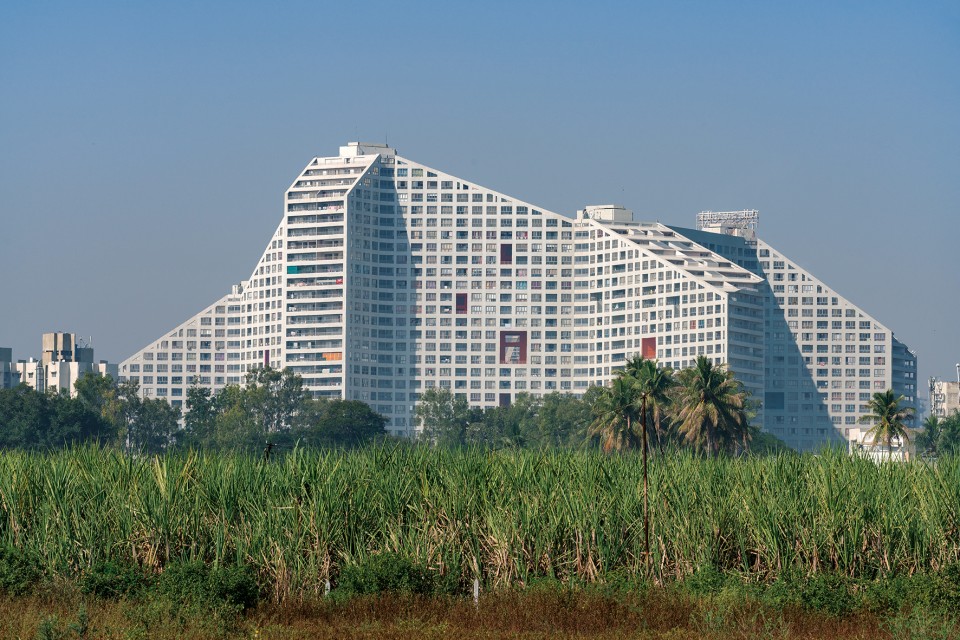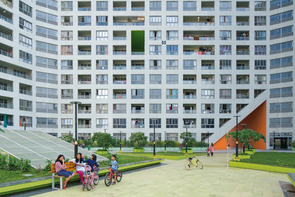 Çevre projelerden bu kritik sapma konusunda yatırımcıyı ikna etmek ise farklı birimlerin bir arada olmasının daha canlı bir yapı oluşturacağı söylemiyle gerçekleşmiş. Farklı tipteki konut birimlerini bir arada bulundurması sayesinde yapı Hindistan’ın tüm sosyal kesimlerine hitap eder hale gelmiş. 45 metre kareden 450 metre kareye kadar değişen dairelerin tek bir komplekste bulunması bölgede orta sınıfı oluşturan tüm bireyler için cazip bir konaklama alternatifi oluşmasını sağlamış. Yapının dağa benzeyen şekli, bu kadar farklı birimin tek bir kütlenin içine entegre edilebilmesini kolaylaştırmış. Ayrıca yatırımcının yeni şeyler denemeye istekli olması sayesinde, toplu konut için gerekli olan verimlilik, sakinlerin konforunu azaltmadan elde edilmiş.