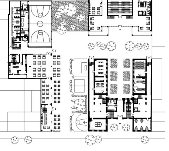Yine öğrencilerin yakın çevreleriyle olan etkileşimlerini artırabilmek için eski okul binası, yeni tasarlanan okul binası ve kreş binası arasındaki bütünleşmeyi sağlamaya çalıştım. Bu amaçla yeni okul binasını, kreş ile eski okul binası arasında çözdüm.