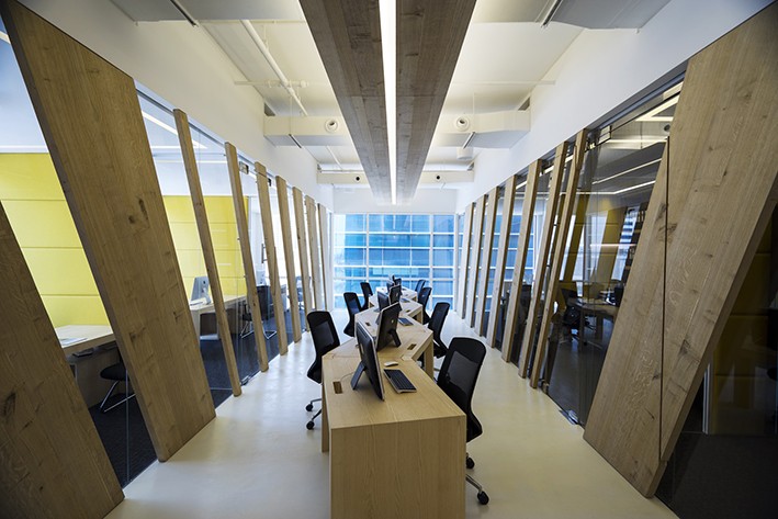 Amerikan beyaz meşe ve dişbudağı ağaçlarını kullanan mimarlar cesur tasarımları ile Dubai’deki Unique Properties için modern kent ofisi ortamı yarattılar