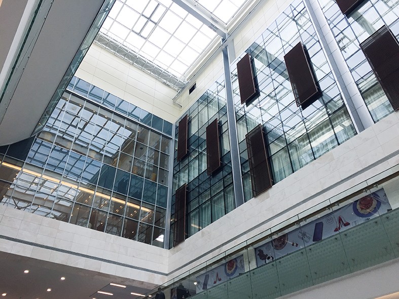 Bu sebeple bu cephe nispeten yüksek yapısal hareketlere izin veren, yüksek oranda şeffaf ve yüksek oranda güneş korumalı bir cephe olmak zorundaydı. Bu özellikleri sağlayacak, yalnızca yatayda taşıyıcı profilleri bulunan düşeyde ise cam cama silikon derzli özel bir sistem Priedemann Cephe Danışmanlığı tarafından geliştirildi ve projenin cephe yüklenicisi Pimeks firması tarafından uygulandı.