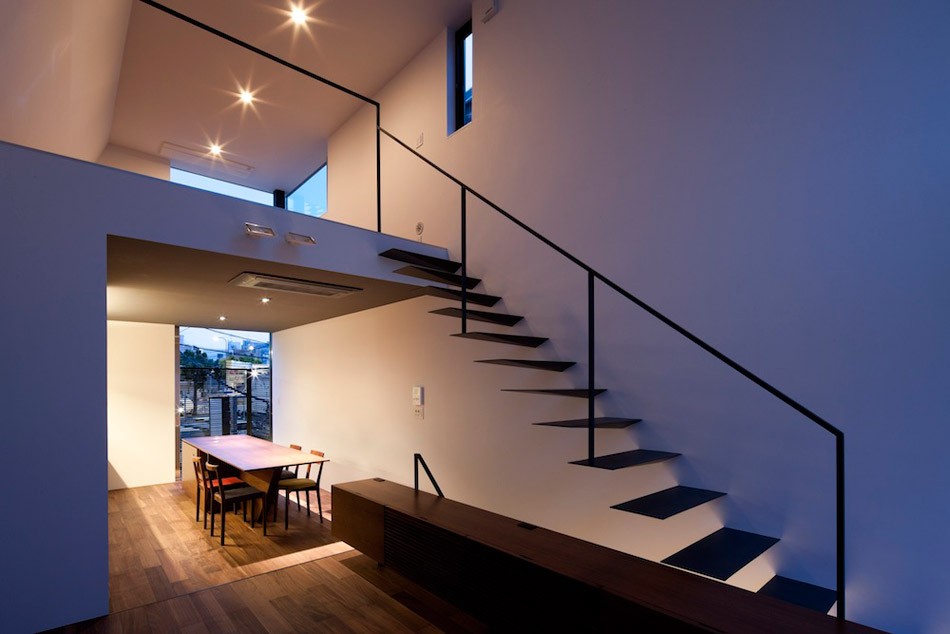 Burada küçük pencereler ışığa izin vermek için tavana yakın yerleştirilmiş, ancak istenmeyen dikizlemelere izin vermez. Ana yaşam alanları üst katta çatı katı olarak yer alır. Orta katta açık plan mutfak, yemek alanı ve oturma odası bulunur. Bu katta konutun her bir ucu sokağa bakan veya yukarıdaki gökyüzüne açılan bir balkona açılır.