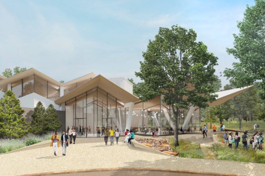Arkansas Güzel Sanatlar Müzesi'nin yeniden tasarımı ve genişletilmesi, yağmur suyunu çevreleyen yağmur bahçelerine yönlendirmek için tasarlanmış kıvrımlı şekillere sahip akıcı beton bir yapı olan imza çatısının tamamlanmasıyla bitiş çizgisine dev bir adım daha yaklaştı. Mayıs 2022'de açılış tarihi olan 133.000 metrekarelik proje, Studio Gang mimarları tarafından peyzaj mimarlığı firması SCAPE ile iş birliği içinde tasarlandı. Bir yağmur suyu yönetim planına ek olarak, eko-düşünceli tasarım, mevcut binaların en karbon yoğun unsurlarının uyarlanabilir şekilde yeniden kullanımını, yerli türlerin 11 dönümlük yeni peyzaja entegrasyonunu ve mevcut toprakların %90'ının korunmasını içerir.