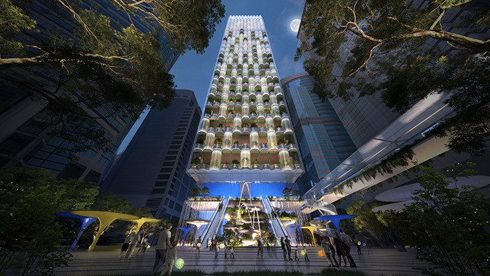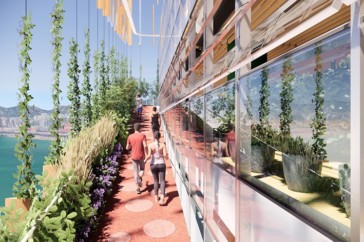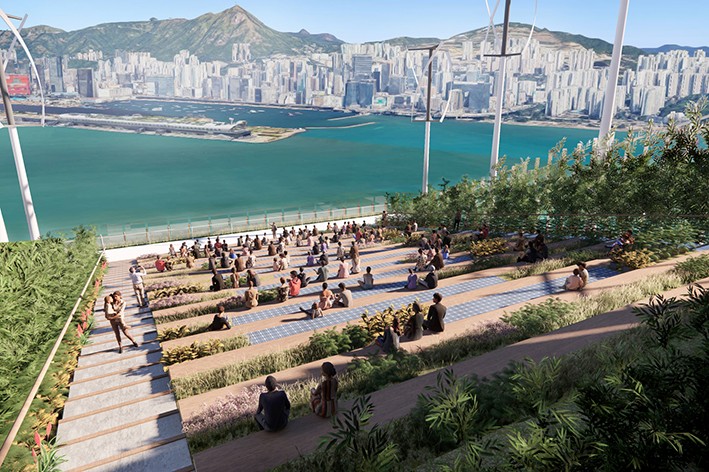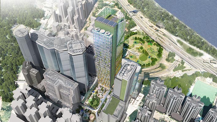 Bu proje ile Arup, karbondan arındırma konusundaki kararlılığını sergilemekte ve Hong Kong'un çevreye duyarlı gelişimi için bir işaret oluşturmak üzere sürdürülebilirlik, teknoloji ve döngüsel tasarım uzmanlığından yararlanmaktadır. Sitenin koşullarına en iyi şekilde yanıt verecek biçimde şekillenen tasarım, kule boyunca yükselen bir yol oluşturan yeşil ortak alanlar ağıyla tanımlanıyor. Bu ağ, alt katlarda su soğutmalı bahçeler ve plazalar, kinetik enerji yastıkları olan peyzajlı bir gökyüzü yolu, yenilebilir bitkilerle doğal olarak havalandırılan bir bahçe ve ayrıca 500 kişilik bir çatı tiyatrosundan oluşmaktadır.
