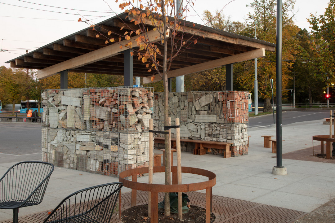 Brüksel merkezli mimarlık ikilisi Brasebin-Terrisse, bu yılki Tallinn Mimarlık Bienali kapsamında atık malzemelerle bir otobüs durağı inşa etti.
