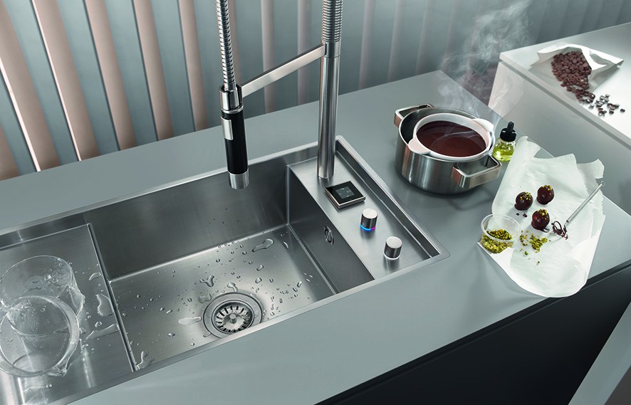 AYT Home tarafından sunulan armatür markası Dornbracht’ın ilk elektronik ürünü eUnit Kitchen, çeşitli fonksiyonları ile mutfaktaki günlük işlerde kullanıcılarına büyük bir rahatlık sunuyor.