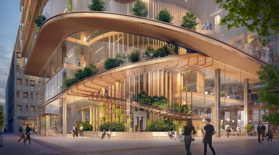 UNStudio tarafından tasarlanan binanın Agora Masterplanı'nın merkezi olması ve kamuya açık bir karma kullanım katının üzerinde 8 kat ofis alanı içermesi amaçlanıyor. Çok katlı lobi, resepsiyon ve ticari işlevler için birleşik bir alan yaratırken, yuvarlak merdivenler çevredeki kentsel peyzaj ile görsel bir bağlantı oluşturuyor. Binanın kat planları, taşıyıcı kolonlara olan ihtiyacı ortadan kaldırmak ve esnek iç düzenler için zemin alanını serbest bırakmak amacıyla çelik kablolarla asılan yuvarlak bir çekirdekten dallanıyor.