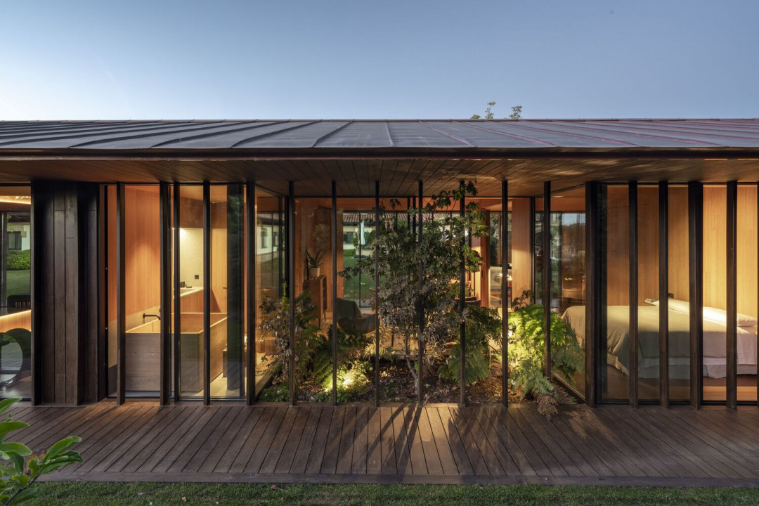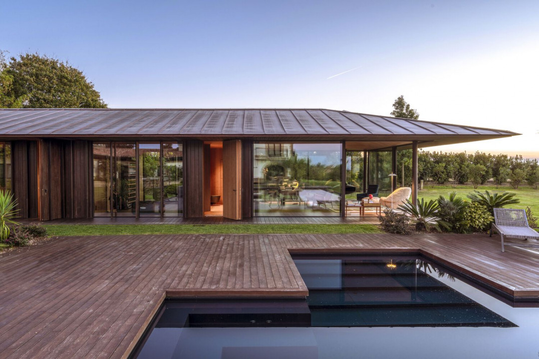 İspanya'nın Cantabria kırsalında yer alan sürdürülebilir mimari GODAI Pavyonu, mevcut bir evin havuz alanını genişleterek misafirler için çatılı bir açık yapı oluşturuyor. Hafif eğimli bir arazide yer alan pavyon, yerel iklimde doğal malzemelerin önemini vurgularken, farklı mimari stiller arasında uyumlu bir diyalog yaratarak bir 'havuz konutu' olarak hizmet veriyor.