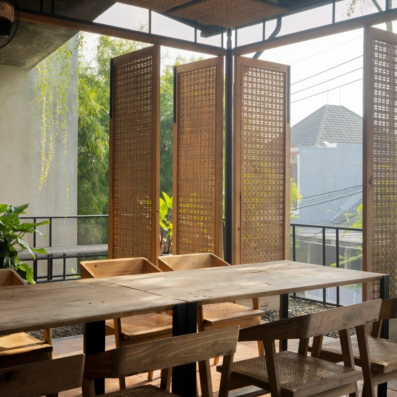 Mimarlık stüdyosu andyrahman, Sidoarjo, Doğu Java, Endonezya'da yeni bir biyofilik çalışma alanı tasarladı. Konsept insanlara çalışmak için daha sağlıklı ve mutlu bir yer sağlamayı, stres seviyelerini en aza indirmeyi ve böylece çalışanın günlük yaşama olan sevgisini yeniden kazandırmayı amaçlıyor. Daha da önemlisi yeni stüdyo, mimarların ilham alabilecekleri ve yeni yenilikçi fikirler üretebilecekleri bir yer olarak oluşuyor. Bambudan yapılmış açık alanlar, yemyeşil bahçeler ve ‘nefes alan duvarlar’ ofisi tamamlayarak tasarımı doğayla bütünleştiren hoş ve çağdaş bir ortam oluşturuyor.