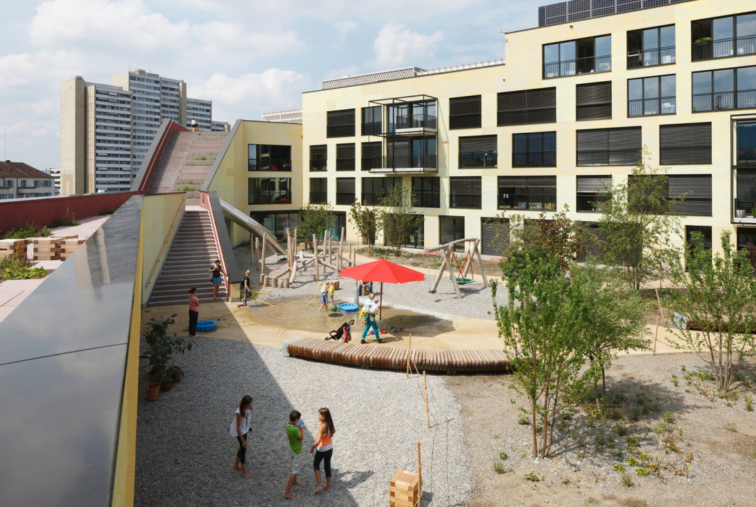 Hibrit ahşap yapılarla tasarlanan Kalkbreite projesi, enerji verimliliği sağlar ve toplu taşıma ile bahçelere öncelik verir.