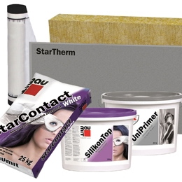 StarSistem elemanlarının (Baumit EPS levha 15cm (16Kg/m3), StarContact White (Yapıştırıcı), StarContact White (Sıva), Startex (File), Çelik Çivili Dübel 220mm, Gazbeton Dübeli 220mm, PVC Fileli Köşe Profili, Uniprimer Astar, Classico Special) yanı sıra yüksek örtücülük özelliğine sahip Baumit SilikonColor dış cephe boyası kullanıldı.