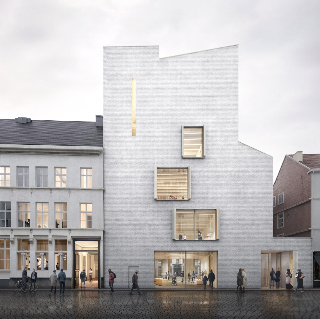 Gent Tasarım Müzesi'nin yeni binasının dış cephesi için tasarlanan Gent Waste Brick, şehrin diğer yerel yapılarının rengine göndermede bulunan soluk gri bir renge sahip ve Eylül 2022'de bina kullanımı için onaylanmış.