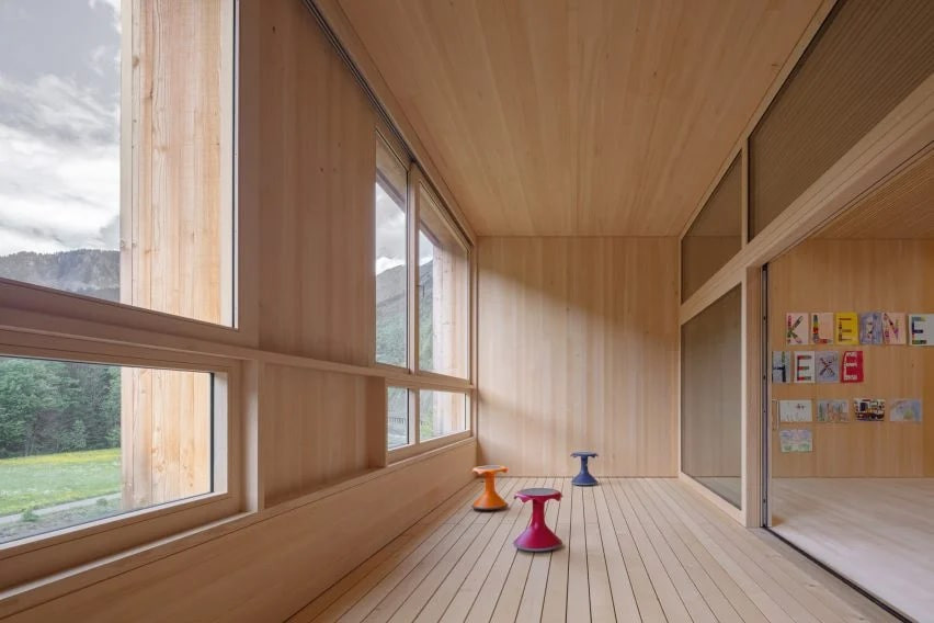 Stüdyonun daha önce hayata geçirdiği projeler arasında Lustenau’da tamamen ahşap detaylarla genişletilen bir anaokulu ve pencereleriyle dikkat çeken taş kaplamalı bir kayak merkezi bulunuyor