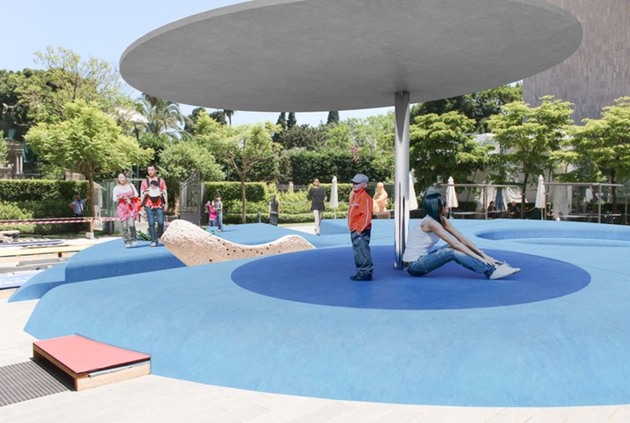 Diving Board enstasyonu, aslında bir araya getirildiğinde yükseltilmiş bir platform haline gelen yumuşak, yeniden düzenlenebilir köpük parçalardan oluşan 400 m2'lik bir müdahaledir. Enstalasyon, yoldan geçenleri şehrin hareketli sokaklarını terk etmeye ve sakin plazaya girmeye davet ederek, müzenin tarihi mimari kimliğiyle tezat oluşturan daha kapsayıcı ve etkileşimli bir yere adım atıyor.