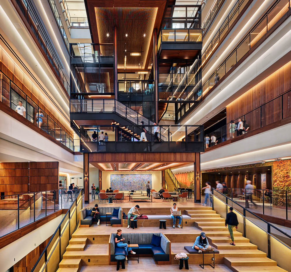 Bloomberg Philanthropies’in desteğiyle hayata geçirilen proje, yalnızca bir eğitim binası değil, aynı zamanda enerji verimliliği, malzeme döngüsü ve karbon azaltımı açısından bir laboratuvar niteliğinde. Masif ahşabın kullanımı, beton ve çeliğe göre çok daha düşük karbon salımı sağlarken, yenilenebilir bir kaynak olmasıyla da sürdürülebilir malzeme kullanımına güçlü bir örnek oluşturuyor. Yapının dış cephesinde kullanılan modüler paneller de, güneş ışığı kontrolü ve doğal havalandırmayı destekleyecek biçimde tasarlanmış. Bu yaklaşım, binanın enerji ihtiyacını minimuma indirirken, yıl boyunca konforlu bir iç iklim de yaratıyor.