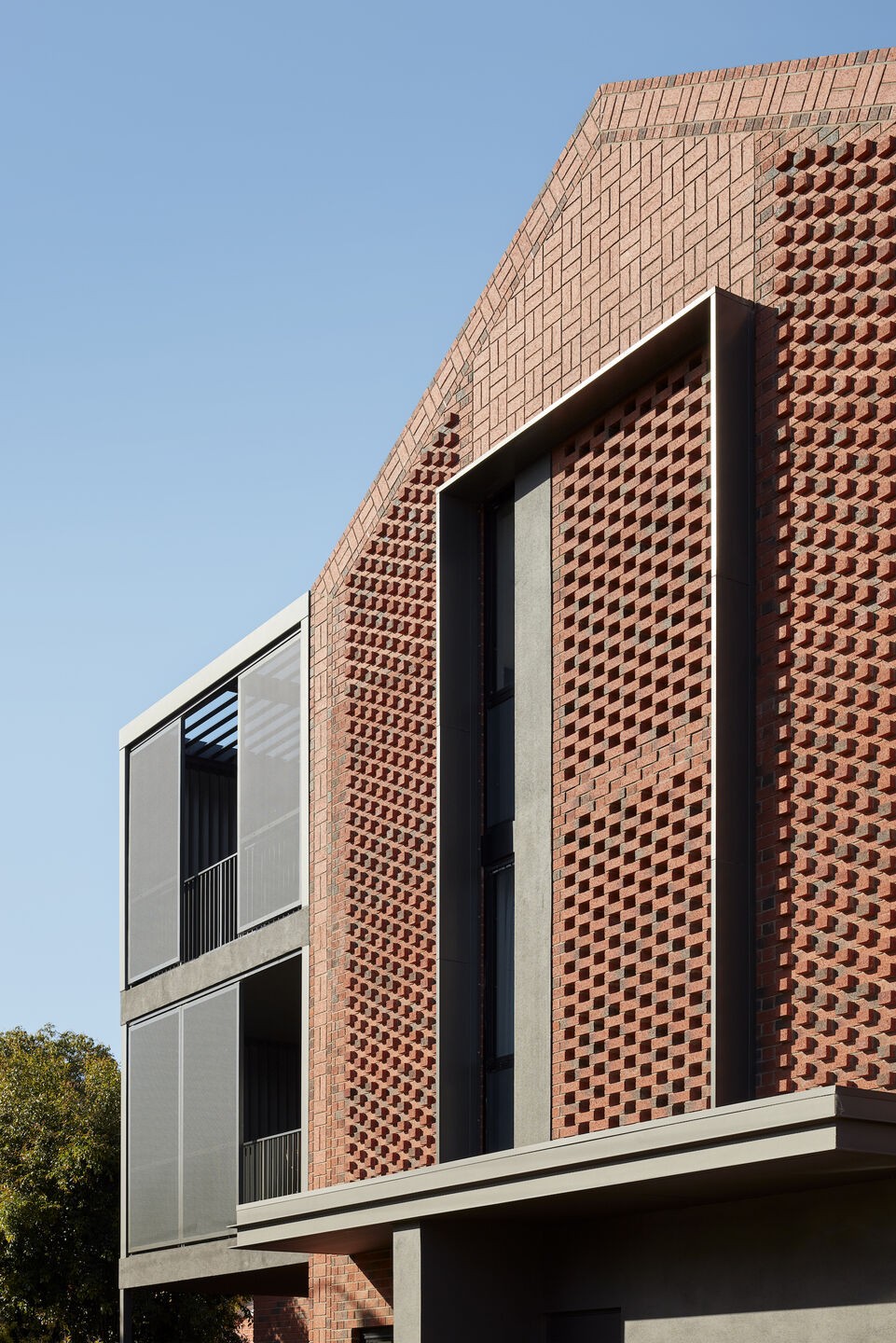 Kırmızı yüzlü tuğla cephe ve üçgen çatı dramatik bir sokak varlığı sunarken, Mt Lawley'in yerel diline yapılan atıfları kutlar. Farklı dış cepheleri üzerindeki zanaatkar ve etkileyici tuğla dizileri, dinamizm ve görsel ilgi katıyor.