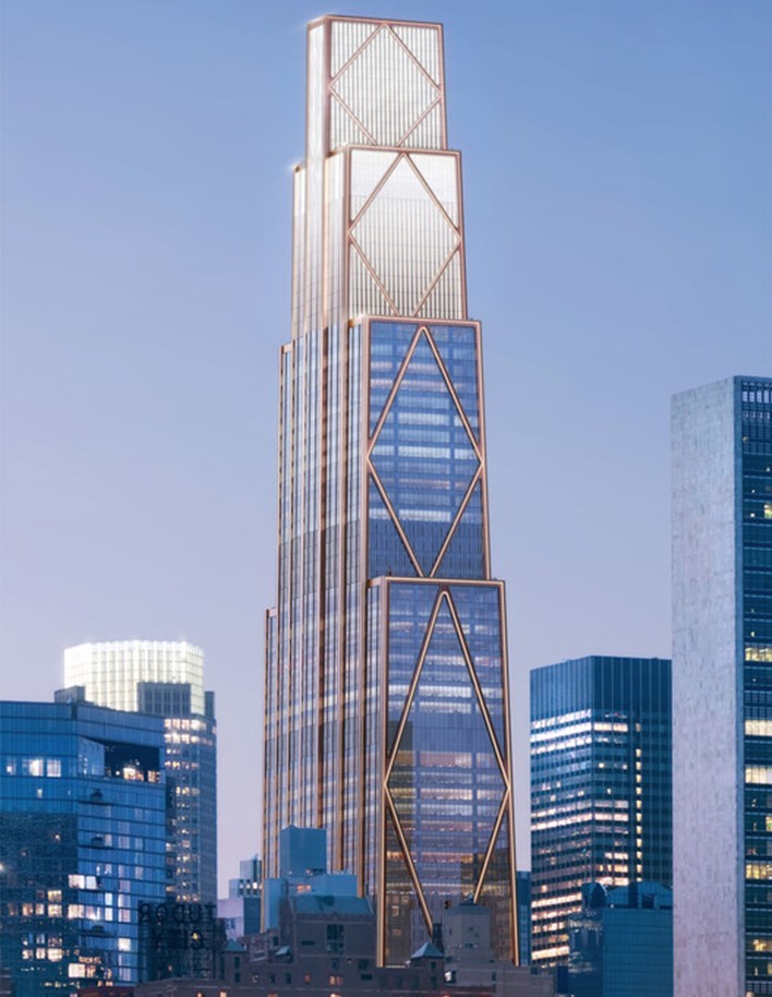 270 Park Avenue'deki yeni kule, sitenin kısıtlamalarını aşmaya yardımcı olan yenilikçi bir yapısal sisteme sahip olacak. Fan-kolon yapısı ve üçgen destek, binanın küçük bir ayak izine sahip olmasını sağlıyor. Yükseltilmiş kütle, bakış açısını Park Avenue girişinden Madison Avenue'ye kadar uzatıyor.