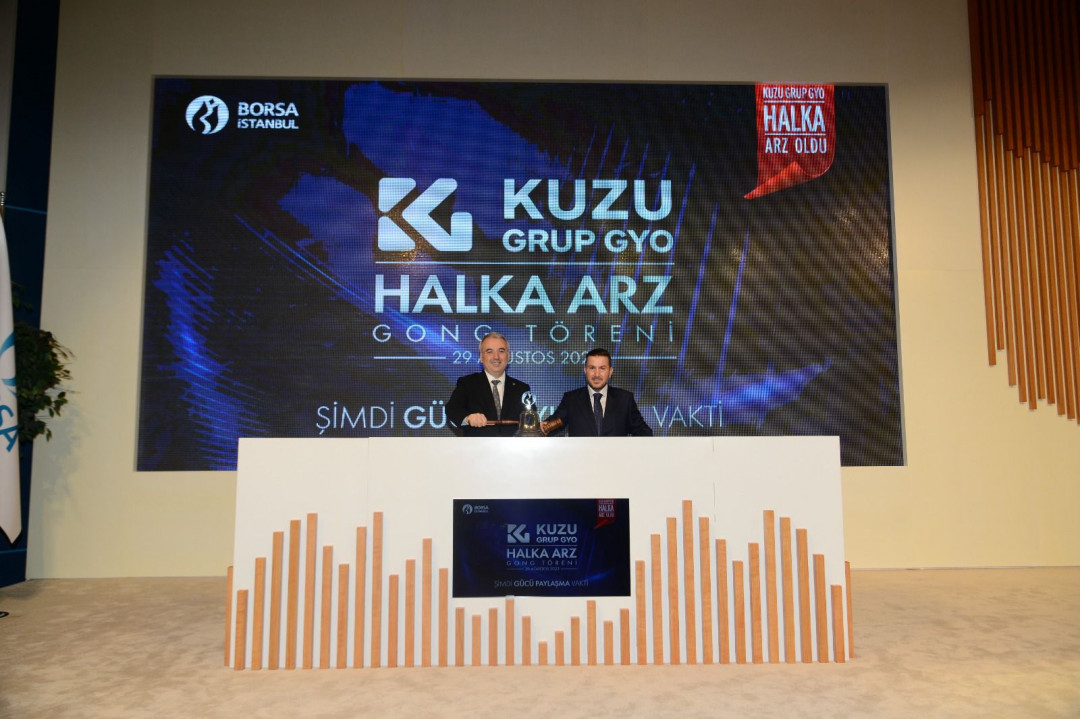 Borsa İstanbul’da gong, Türkiye’nin ve dünyanın önde gelen müteahhitlik ve gayrimenkul geliştirme şirketleri arasında bulunan Kuzu Grup’un turizm GYO yatırımı olan Kuzugrup Gayrimenkul Yatırım Ortaklığı Anonim Şirketi (Kuzugrup GYO A.Ş.) için çaldı. Grubun halka açılan ilk şirketi olan Kuzugrup GYO, başarılı bir halka arz sürecinin ardından ‘KZGYO’ koduyla Borsa İstanbul Yıldız Pazar’da işlem görmeye başladı.