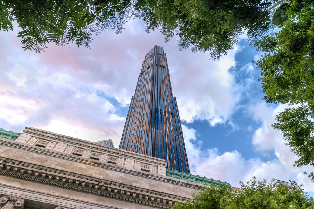 New Yorklu stüdyo SHoP Architects, ilçenin en yüksek yapısı olan süper gökdelen Brooklyn Tower'ın siyah ve bronz dış cephesini bitirdi. 93 katlı ve 325 metre yüksekliğindeki bu süper gökdelen Mart 2023'te tamamlanmıştı ama dış cephesinin karmaşık kaplaması henüz yeni bitti. Gökdelen kulenin tepesinden aşağıya doğru inen siyahlaştırılmış paslanmaz panellere sahip olup, burada kulenin podyumuna dahil edilmiş olan korunmuş tarihi Dimes Savings Bank ile birleşir.