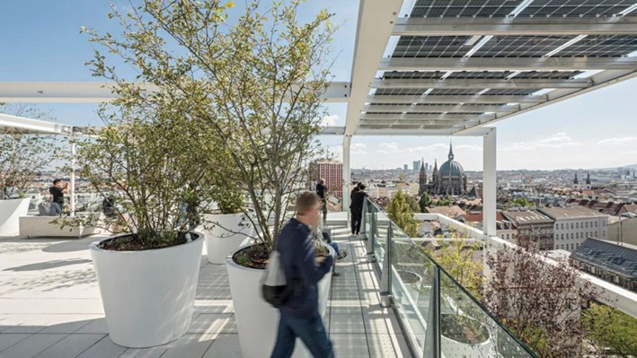 Querkraft Architekten'deki tasarımcılar, Viyana'daki iklim değişikliğini dengelemek için yemyeşil ormanı kurdular. Yüksek ağaçlar- tam olarak 160- hem soğutma hem de nem kaynakları sunuyor. Mağazanın sokak seviyesini bile soğutabileceğini iddia eden firmaya göre, bu ağaçlar doğanın kliması gibiler.