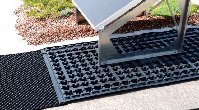 Tüm teras çatılarda olduğu gibi, yeşillendirilmiş çatılarda panel montajında ana kural, su yalıtımının hiçbir şekilde delinmemesidir. Bu nedenle paneller, bitki taşıyıcı tabakaların ağırlığı ile sabitlenir. Bu amaçla su yalıtımı ve/veya koruyucu keçe üzerine hiçbir sabitleme bağlantısı olmadan konacak özel plakalara, paneli taşıyan çerçeveler sabitlenir. Bu plakalar aynı zamanda su tutma haznelerine ve difüzyon deliklerine sahip olduğu için drenaj
