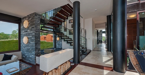 Evet taş, ahşap ve cam ağırlıklı. Özellikle dış cephelerde ahşap giydirmeleri seviyorum. Aynı zamanda da iç güdüsel olarak ahşabı kullanıyorum, bir beton ya da tuğla yüzeyin üzerine ahşap giydirme yapmıyorum. Bunun yerine geçmişimizde var olan çok kapsamlı ahşap konstrüksiyon örneklerini kendi çiftlik evimde aynı şekilde kullanma imkanı buldum. Beton ya da duvar üstüne gelen bir sistem değil, ahşap konstrüksiyonu kurulmuş, izolasyonu yapılmış, modern malzemelerin de dahil olduğu bir ahşap cephe çalıştım. Aynı şekilde taşı da kullandım bu evlerde... Ancak gelin görün ki; kendi evimde de camla çalışmayı, evin yapısı itibariyle tercih ettim, çünkü evin içerisindeki şeffaflık ve görsel perspektifleri koruyabilmek, kapatmamak amacıyla cam kullanımını çok daha ileri seviyelere taşıdım diyebilirim.