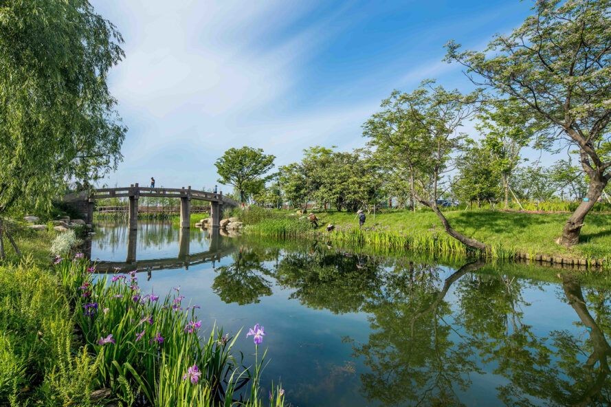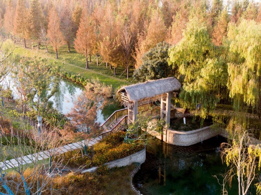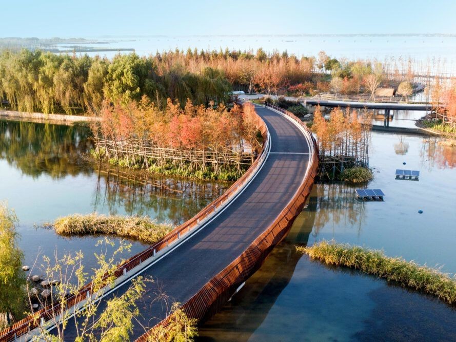 Tus-Design Group Co. Ltd. tarafından tasarlanan bu çarpıcı kıyı bağlantı projesi, tasarımının bir parçası olarak sığ sulak alanları kullanır. Yangtze Nehri de tasarıma entegre edilmiş. Bu projenin amacı kıyı şeridini restore etmek ve de iyileştirmek ve yerel bitkilerden, vahşi yaşamdan ve buraya gelip doğal güzelliğin tadını çıkarmak isteyen insanlar için alan yaratmaktı. Burada zevk alınacak çok fazla doğal güzellik var.