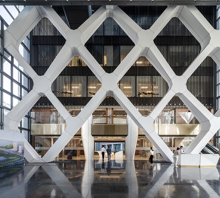 SOM tasarım ortağı Scott Duncan, "Her zaman yaratıcı mühendislik çözümlerini mimari tasarımla sentezleme fırsatlarını araştırıyoruz. Shenzhen Rural Commercial Bank projesi bize, yapıyı dışarıya çeken ve sütunsuz çalışma alanları yaratmak için kuleyi etkin bir şekilde askıya alan bir dış iskelete benzer diagrid'i birleştirme şansı verdi"diyor.