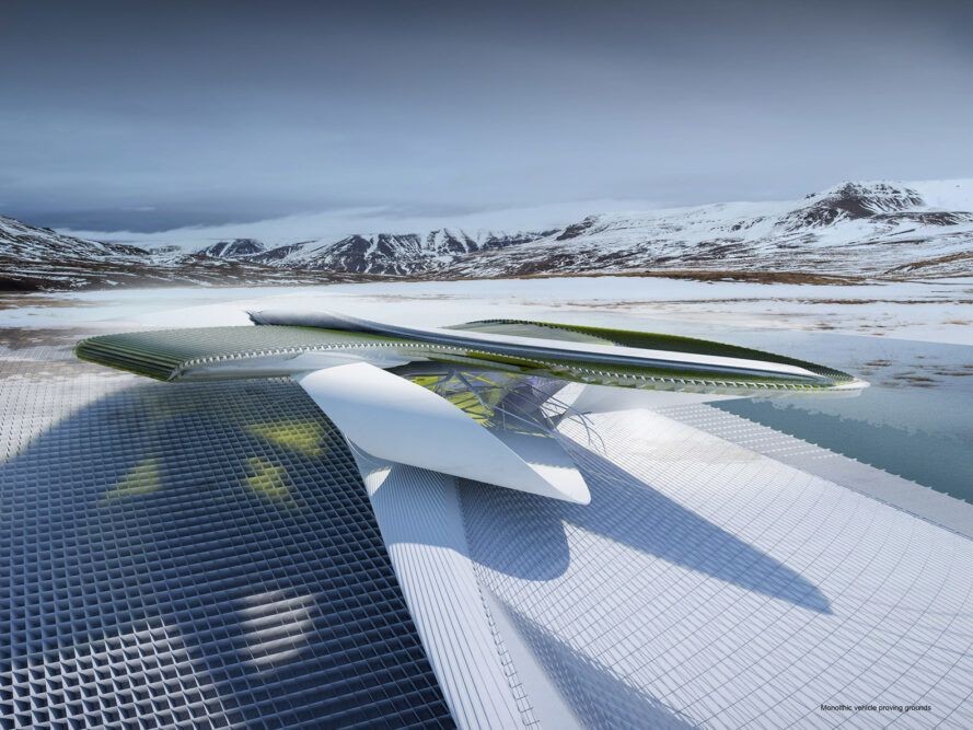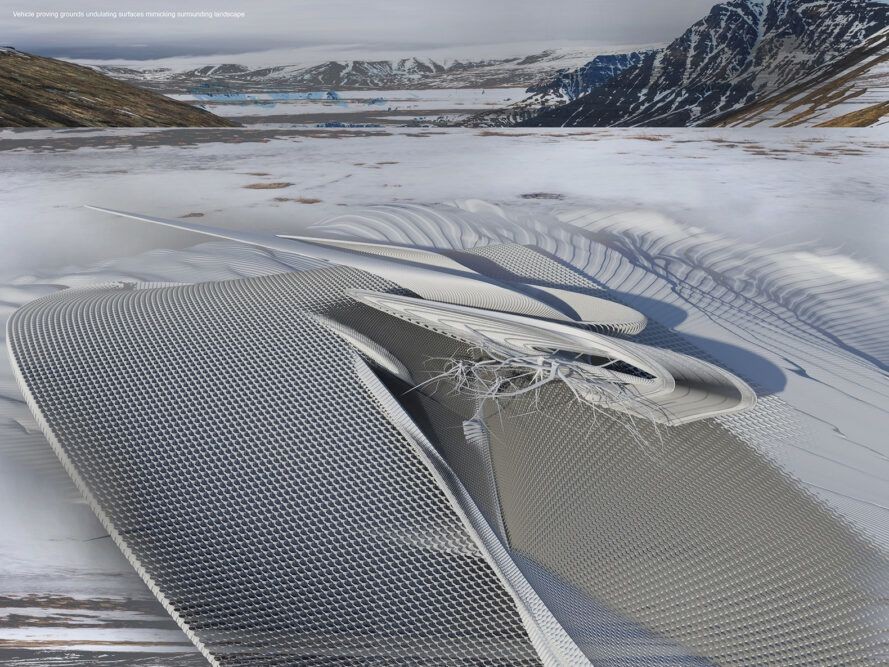 Moğolistan'ın Güney Gobi Çölü'nde, Margot Krasojevic Architects tarafından SIAC için tasarlanan bir bina, kum tepelerindeki hareketsiz monolitik mimariyi araştırıyor. Sand Drift Proving Ground, çevresiyle uyum sağlayarak yerel iklime uyum sağlıyor. Tasarım, sahada çöl rüzgarları tarafından savrulan malzemelere benziyor. Kullanımdayken arazide yükselecek ve hareketsizken kar ve kumun altına gömülür.