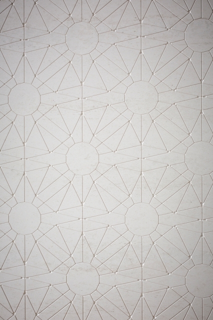 Cosentino’nun Endülüs evi vurgusu, kapının iki yanına gravürle işlenen ve Güney İspanya’nın mağribi desenlerini andıran figürlerle vurgulanıyor. Bu da Dekton’un kişiselleştirme olanaklarından birini temsil ediyor. Dekton’un üretim teknolojisi aynı zamanda kişisel renk, doku, desen ve uygulamalara müsaade ediyor.