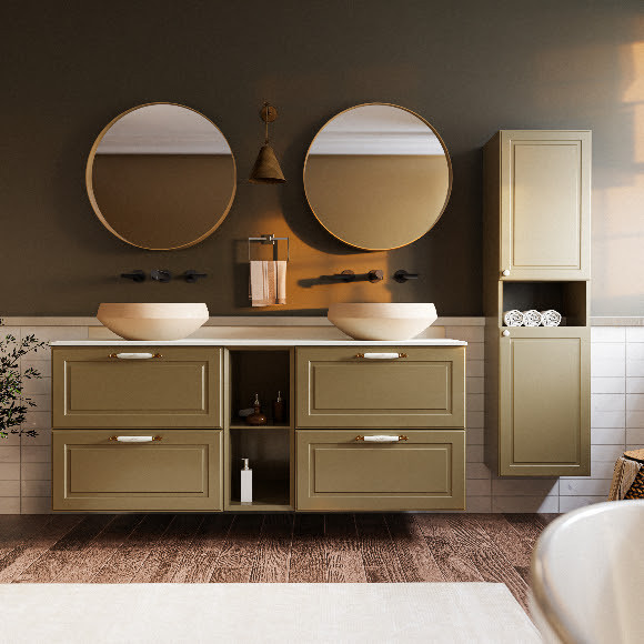 Creavit, küçük alanlarda bile işlevsellikten ödün vermeyen tasarımlarıyla yazlık evlerin banyo ihtiyaçlarına özel çözümler sunuyor. Bu çözümlerden biri olan Perra serisi, hem küçük hem de düzenli bir banyo planlamak isteyenler için ideal. Çekmeceli ve dolaplı farklı modül seçenekleriyle, havlu ve bakım ürünleri gibi temel ihtiyaçlara pratik depolama alanları yaratıyor. +25 cm’lik ek modül seçeneğiyle tezgâh altında alanı optimize ederken, Zeytuni, Tarçın, Ocean gibi doğadan ilham alan renkleriyle yazlık evlerin dingin atmosferine uyum sağlıyor. Farklı ayna formları ve çerçeve seçenekleriyle kişiselleştirilebilir bir görünüm de mümkün.