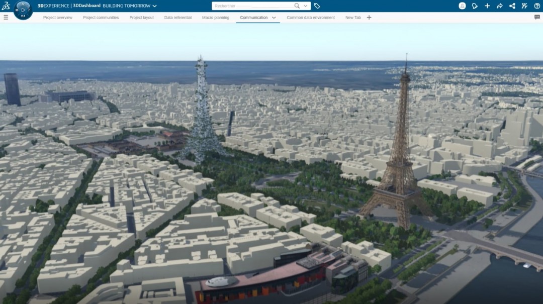 "Building Tomorrow" (Yarını inşa etmek) programı kapsamında pek çok sektörden Dassault Systèmes uzmanları bir araya geldiler ve hızlı kentleşme, sera gazı emisyonları ve enerji tüketimi gibi önemli sürdürülebilirlik zorluklarını 3DEXPERIENCE platformunu kullanarak ele aldılar. Program kapsamında uzmanlar Eyfel Kulesi’nin düşük karbonlu, döngüsel ve yenilenebilir bir versiyonunu platform üzerinde tasarladılar ve inşa ettiler. Proje, değer zinciri boyunca yaşam kalitesini artıran ve her ölçekte olumlu etki yaratan döngüsel uygulamaları mümkün kılmak için kamu yetkililerinin, mühendislerin, mimarların, lojistik uzmanlarının ve inşaat çalışanlarının yeni yöntemler üzerinde nasıl birlikte çalışabileceklerini ortaya koyuyor.