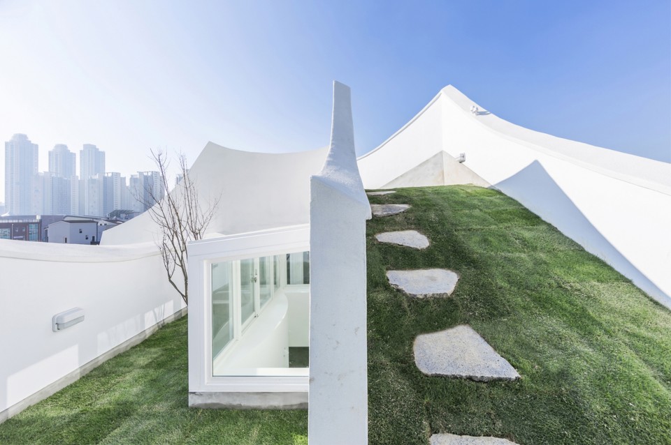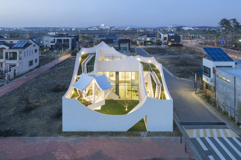 Genç bir pilot ve ailesinin oturabilmesi için Kore’de Incheon havaalanı yakınlarında yeni gelişmekte olan kasabadaki siteye bir ev inşa edildi.