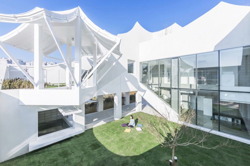 Kore geleneksel mimarının bahçe, bahçe ve rumaru köşkleri gibi mekansal ve peyzaj unsurlarını ev ana dış alanını uygulayan çağdaş konut programına dönüştürüp, avludan çatıya kadar çatı katını ağaçlandırarak manzara yaratımı sağlanmış. Dolaşıma izin veren eğimli çatı bahçesi evin doğayla bir arada olmasını sağlıyor.