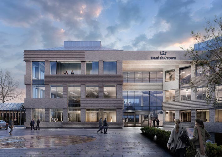 Felsefesi doğrultusunda mimari ve sürdürülebilirlik açısından da bir açıklama arayan bir şirket olan Danish Crown, yeni genel merkezini çerçevelemek için daha yeşil tuğlalar seçti. Proje, Danimarka mimarlık ofisi CEBRA tarafından kristal netliğinde bir vizyonla geliştiriliyor: “Uzun ömür için tasarım yaparsak, bu bir binanın toplam iklim ayak izini azaltır. Bu nedenle dayanıklılık, onlarca yıl sürecek ve minimum bakım gerektiren katı malzemelerin kullanımını vurguladığımız Danish Crown genel merkezinin tasarımında kilit bir unsur olacaktır. Ayrıca, kullanıcılarının değişen ihtiyaçlarını karşılamak için zamanla uyum sağlayabilen ve binanın ömrünü de uzatacak esnek bir bina tasarladık.” Mikkel Frost, Mimar ve Kurucu Ortak, CEBRA Architects.