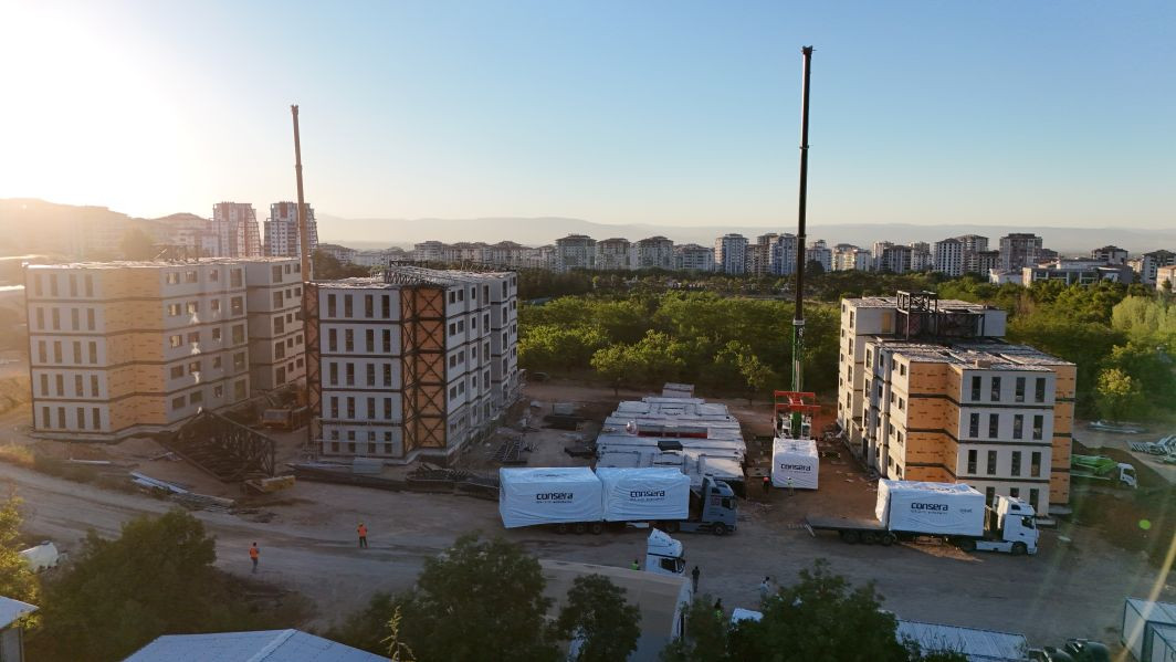 Türkiye’nin ilk modüler çelik apartmanı Malatya lojmanları hakkında bilgi veren Şimşek; “Malatya lojmanları kentsel dönüşüm için önemli bir model olmaya aday. Deprem dirençli olarak tasarladığımız yapılar, 320 modül, 5 kat ve 4 blok 80 daireden oluşuyor. Malatya lojmanlarının deprem bölgesinde kentsel dönüşüme örnek bir çözüm olacağını inanıyoruz. Modüler çelik özelinde Türkiye’de bu hacimde bir proje ilk kez hayata geçti. Projemizin tasarım ve üretim süreçlerinde BIM ve dijital ikiz teknolojilerinden faydalandık. Modülerleştirme ile standardizasyon yaklaşımını benimseyen Consera olarak bu teknikleri kullanarak tasarım, fabrika ve şantiye süreçlerini birbirine entegre ederek montaj ve genel proje süresinin kısaltılmasını sağlıyoruz. Çelik yapı sektöründeki geçmişimizden ve 3 milyon metrekarelik deneyimimizden güç alarak yalın, verimli yöntemlerle depreme karşı dayanıklı, daha iyi binalar üretmeyi sürdüreceğiz.” açıklamasını yaptı.