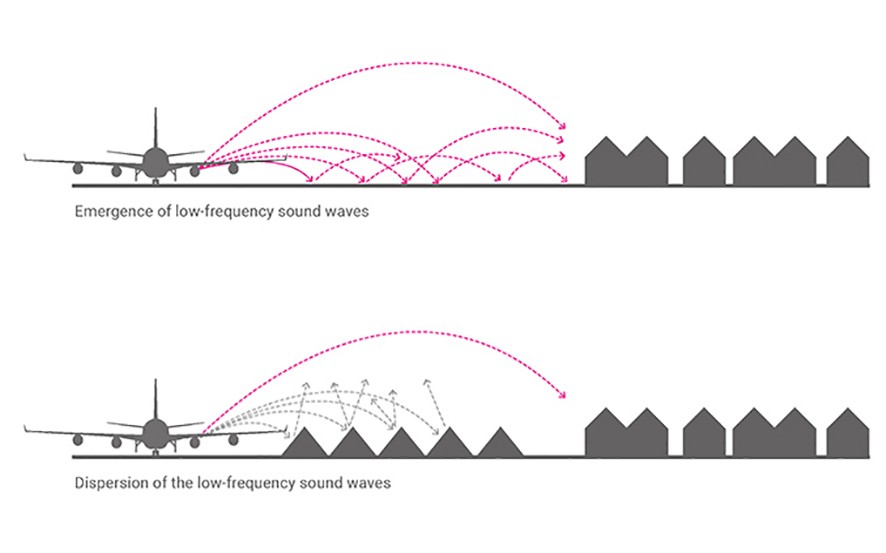 Multidisipliner bir proje ekibi, Schiphol Grubu adına havalimanındaki zemin gürültüsünü eşzamanlı olarak azaltan bir rekreasyon parkı tasarladı. Tasarım, peyzaj mimarisi, arazi sanatı ve yenilikçi teknolojinin benzersiz bir bütünleşmesidir.