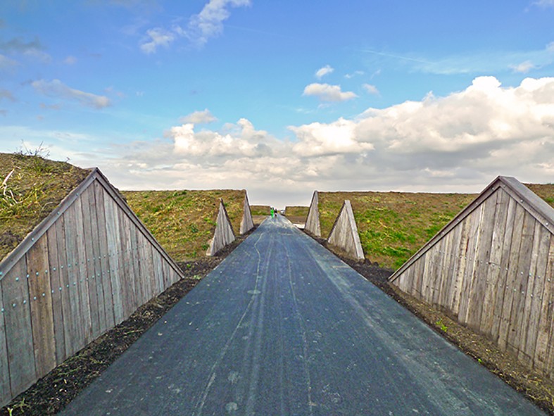 Bu çukurların yanı sıra sırtlar arasında kalan bir metrelik geniş yollar, Hoofddorp'dan gelen ziyaretçiler için yürüyüş yolları olarak kullanılmakta. Zemin sırtları, optimum ses azaltımı için ses dalgalarına dik olarak yerleştirilir. Bu, Haarlemmermeer-polder'ın düzenli ızgarasıyla ilginç bir bağlantı yaratan bir forma yol açmış.