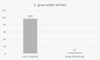 1.gruba sorulan; “Dikey bahçe nedir biliyor musunuz?” sorusuna %96.9 oranında “evet” cevabı vermiş yine ’Dikey bahçe uygulamaları yapılmalı mıdır? ‘’sorusuna ise; katılımcıların büyük çoğunluğu %81.50 ‘i evet cevabını vermiştir.