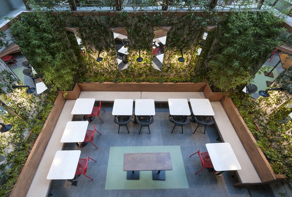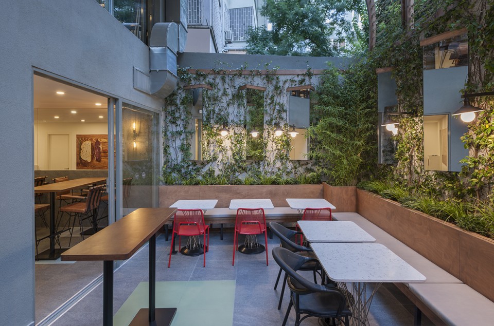 Girişteki sirkülasyon akışı ve bekleme süreleri göz önüne alındığında daha rahat bir ortamda ve uzunca oturmak isteyenler, ödeme noktasına geldiğinizde fark edeceğiniz ve tüm katlardan algılanan bahçemiz, yeşil ve ahşabın sıcaklığıyla sizi kendine çekecektir. Katlar arasında bir bütünlük oluşturan ahşap pergolayı saran yeşil dokuyla birlikte bahçede, günlük taze yemeklerinizi yerken Nişantaşı’nın bilindik yoğun insan trafiğinden ve karmaşasından sıyrılacaksınız.