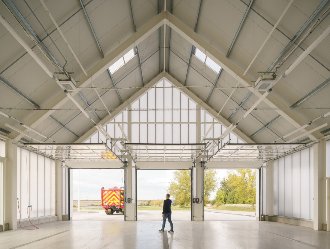 SOA Architekti, projeyi tasarlarken üç ayrı ısıl bölgeyi — dış mekan, garaj ve ana bina — öne çıkarmış. Bu üç bölgenin teknik tasarımı ve operasyonel ayrımı, mimari konseptin önemli bir parçası. İtfaiye istasyonu, şeffaf bir polikarbonat cepheyle kaplanmış ve çelik bir salon olarak inşa edilmiş. Ayrıca, itfaiye istasyonu içinde entegre bir çapraz lamelli ahşap (CLT) yapı barındırıyor. Polikarbonat cephe, dışarı ile görsel bir bağ kurarken, itfaiye araçlarını koruyarak işlevselliği arttırıyor. Ahşap yapı ise gönüllü itfaiyeciler için eğitim ve dinlenme alanları sağlıyor. Garajın doğu cephesinde yer alan büyük pencere, halkın itfaiye istasyonunun iç kısmını görmesini sağlıyor.