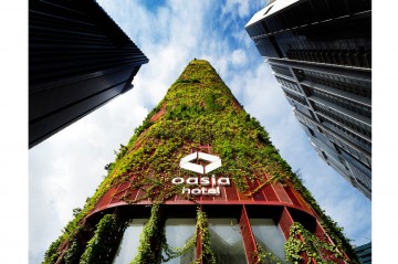 Oasia Hotel Downtown, Singapur'un yoğun kent dokusu içinde yükselen 27 katlı bir binadır. Ancak bu yüksek yapı, beton ve camdan çok daha fazlasını sunar; dış cephesinin yüzde 60’ı çeşitli tropikal bitkilerle kaplanmıştır ve bu bitki örtüsü, Singapur’un tropikal iklimine uygun olarak seçilmiştir.