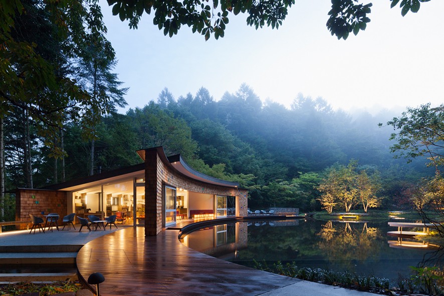 Aktif yanardağ eteklerinde bulunan Nagano Bölgesi Japonya’nın yaz aylarında serin sıcakları sonbaharda kırmızı yapraklı bitki örtüsü; kışın ise bu rengi beyaza bürüyen karıyla ünlü bir yerdir. Yaz ve kışları doğa sporlarına açık bölgede kışın paten kulübü yaz aylarında da doğa merkezli dinlenme tesisi olarak işlev görecek bu proje Klein Dytham Mimarlık ile Japon Peyzaj tasarım stüdyosu arasındaki işbirliğiyle gerçekleştirildi.
