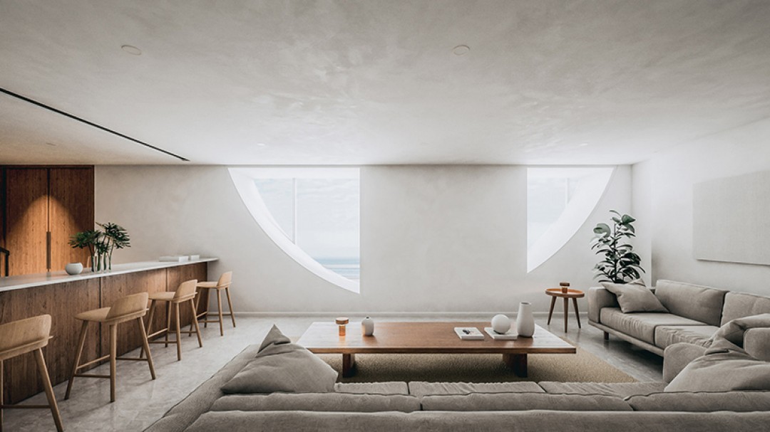 “Ev sadece denizden, kesintili bir daire olarak görülebildiği için doğayla sonsuz bir bütünlük içerisinde,” diyor Vural. “Sahilin manzarası değişmiyor- ev çevresiyle bütünleşiyor, kendini çevreye dayatmıyor.”
