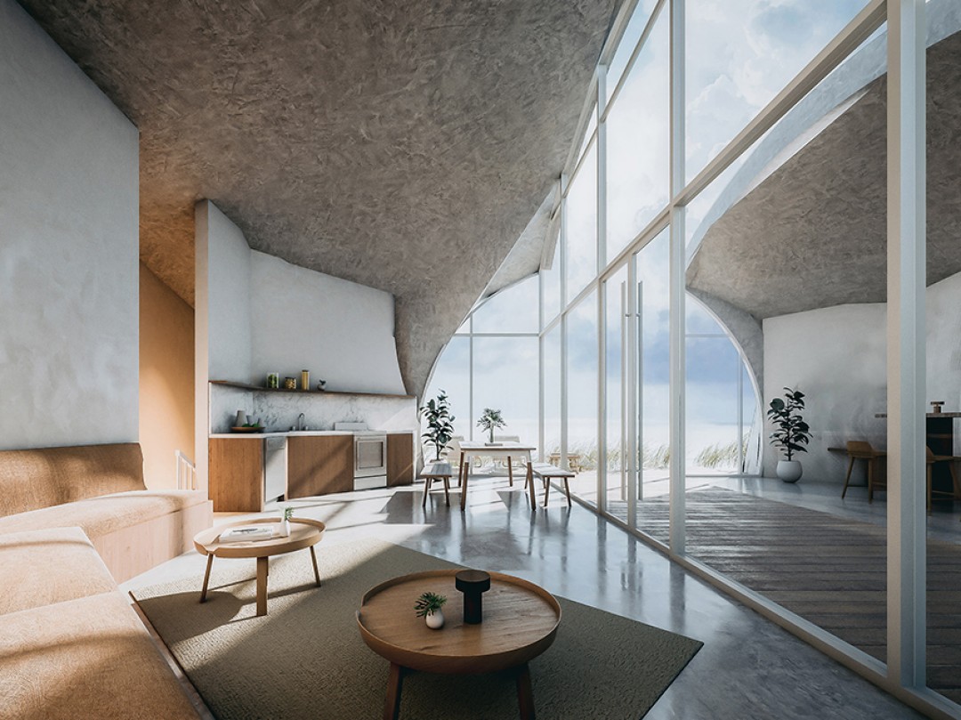 Mimarlık ofisi Stüdyo Vural, kum tepeciklere oyulacak ve kamu işletmelerinden hizmet almadan çalışacak bir tatil yerleşkesi tasarladı. Dune House, Massachusetts’in bir çengeli andıran yarımadası Cape Cod’un küçük bir köyü olan Wellfleet için tasarlanmış.