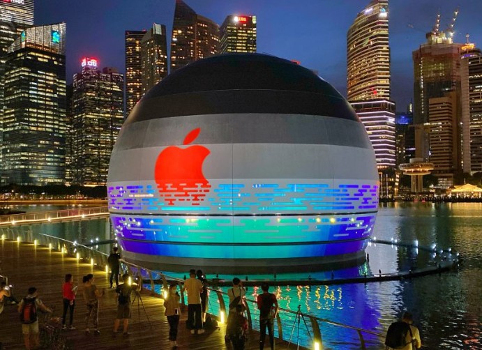 Küresel mimari tasarım İngiliz mimarlık firması Foster + Partners tarafından tasarlanan en yeni Apple Store, Singapur'un Marina Körfezi'nin üzerinde yüzer gibi görünen küresel bir binadır. Önümüzdeki haftalarda açılması planlanan mağazanın etrafı tamamen sularla çevrili ve denize kıyıdan bir köprü ve Marina Bay Sands alışveriş merkezine bağlanan bir su altı tüneli ile ulaşılabiliyor.