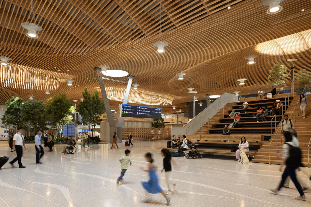 İnsanları ve mekanı merkezine alan, ağaçlarla çevrili perakende satış noktalarına sahip hoş meydanlar, Portland'ın yaya dostu sokaklarını anımsatıyor. Çeşitli ölçeklerdeki kentsel mobilyalar ve bitkilerle dolu buluşma yerleri, yolcuları rahatlamaya ve çevrelerinin tadını çıkarmaya davet ediyor. Havaalanı manzaraları, bol doğal ışık ve bölgenin doğal güzelliğini ortaya çıkaran iç mekan manzaraları, yolcuların seyahatlerini daha keyifli ve huzurlu hale getiriyor, onlara rahatlayıp bölgenin eşsiz atmosferini hissetme fırsatı sunuyor.